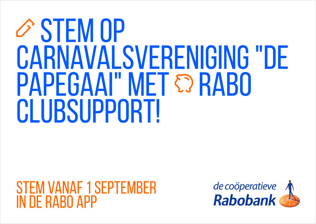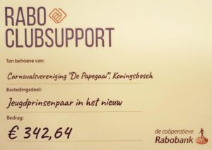 Ook dit jaar doet CV de Papegaai deel aan de Rabo ClubSupport-actie. Vanaf dit jaar nemen wij het Jeugdprinsenpaar over van SbaK. De opbrengst van deze actie helpt ons het Jeugdprinsenpaar te ondersteunen bij alles wat komt kijken in hun seizoen.